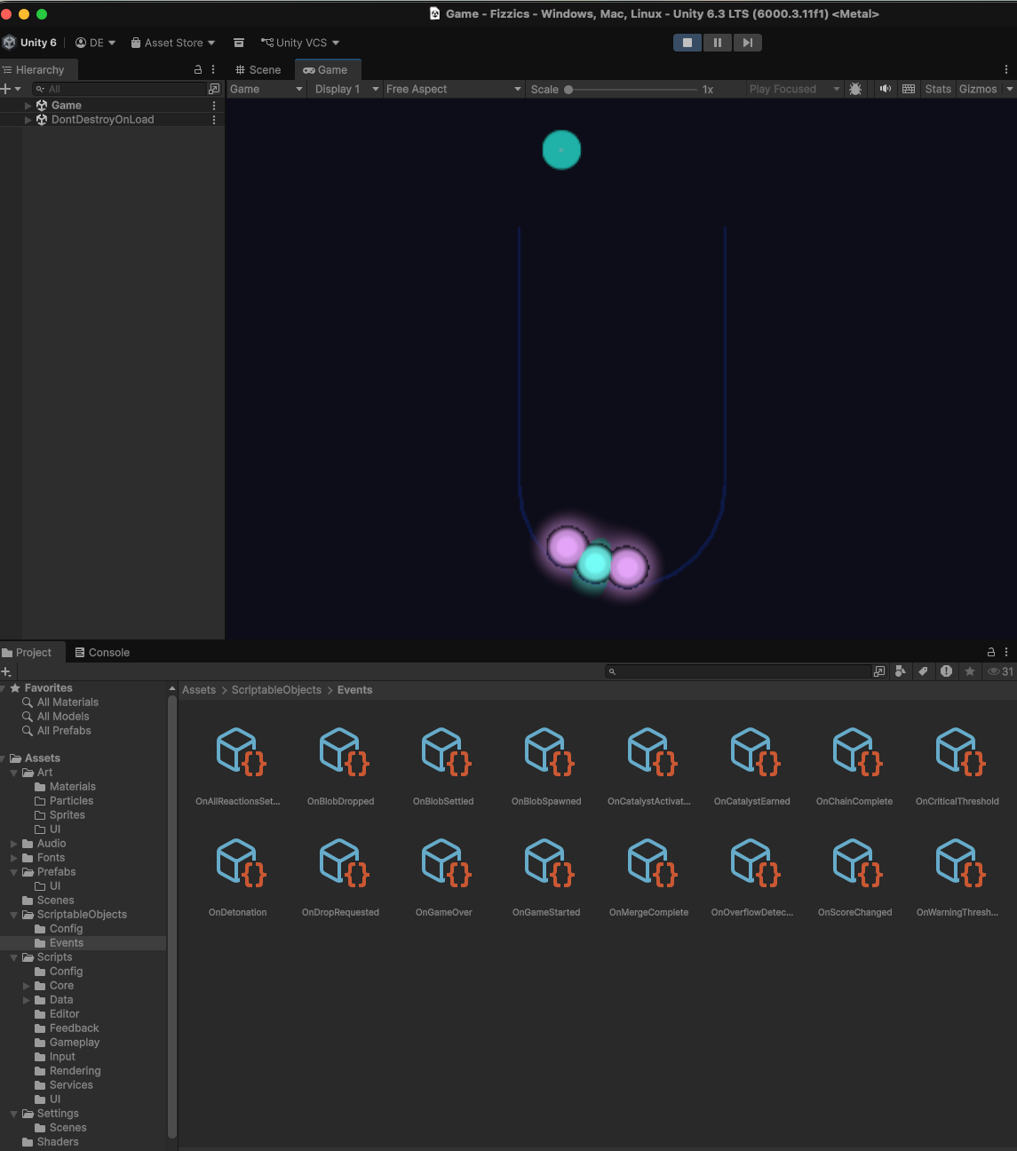Fizzics' entire concept rests on one bet: glowing liquid blobs that merge and explode will look spectacular on a phone screen. If I can't render fluid physics at 60fps on an iPhone, there's no game. Just a nice concept doc and a life lesson about validating assumptions.