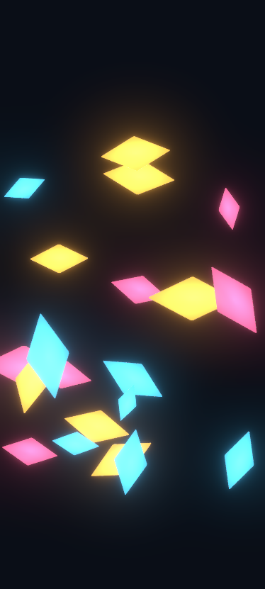 That's 20 placeholder diamonds running the crystal shader with URP Bloom. Even with programmer art sprites, the Fresnel edges and bloom interaction produce something that reads as luminous and expensive. The void background (pure #0A0E17) makes the crystals the sole light source in the scene, which is the entire aesthetic bet for Glyntfall.